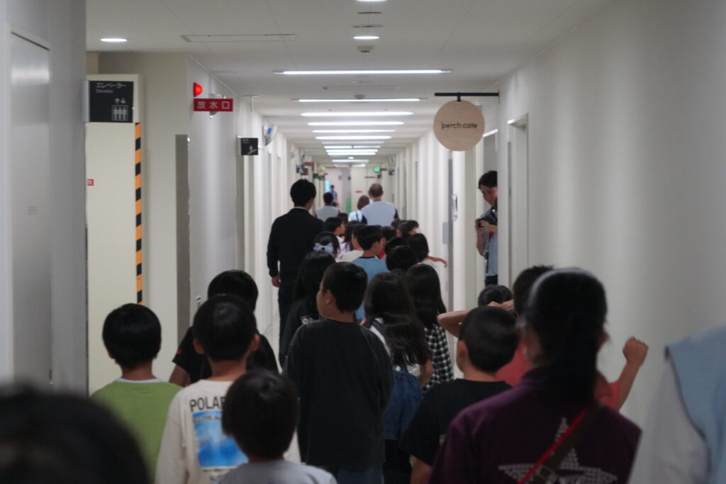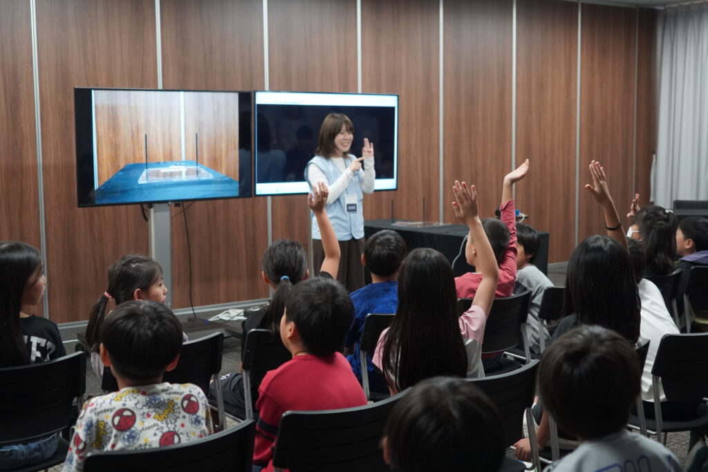 くまもと半導体グリーンイノベーション協議会(以下、KSGI)の人材育成部会は、2025年10月24日、菊陽北小学校の 3 年生 約 100 名を対象に、半導体企業見学会を実施しました。小学生を対象とした工場見学会は、KSGI発足して初めてのイベントで、KSGI会員企業であるソニーセミコンダクタマニュファクチャリング(株)の熊本テクノロジーセンターで行われました。工場内で製品を運ぶロボットの実演のほか、イメージセンサーの技術を体験できるデモンストレーション、構内のクリーンルームの見学が行われ、日々の授業では目にすることのない機械や技術を目の当たりにし、各所で歓声が上がっていました。菊陽北小学校の生徒からは、「半導体が人の機能の代わりの役目を果たすことがわかった」「普段見ることのできない光景を見られてうれしかった」などの感想をいただきました。人材育成部会では、引き続き半導体関連産業について身近に感じ、学ぶことのできるイベントを企画するなど、興味をもってもらえるような取り組みを進めてまいります。